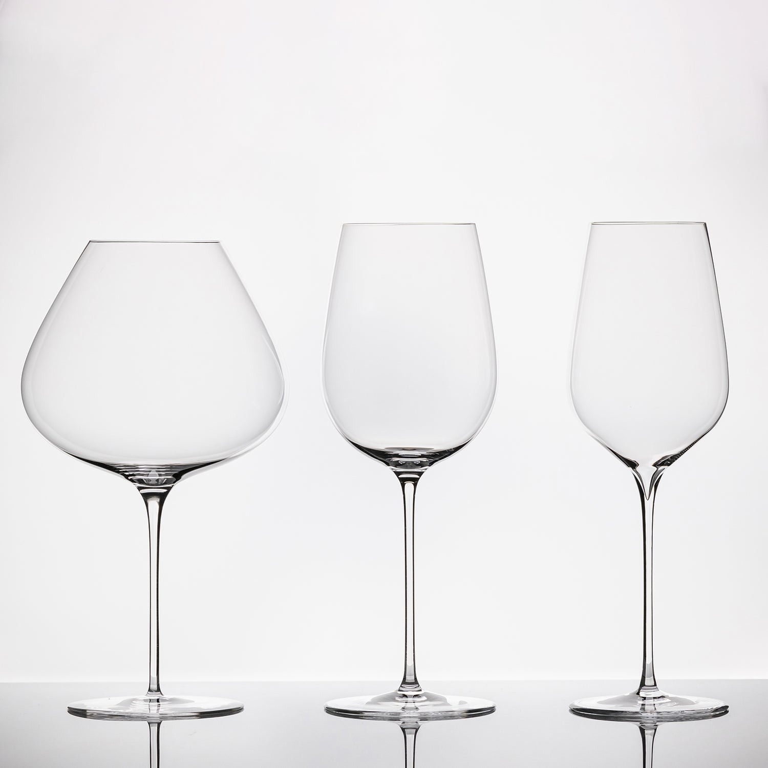 不同酒杯对品鉴体验的影响。本系列酒杯从根据初步研究结果创建的7个原型中,选取了表现最佳的3个。